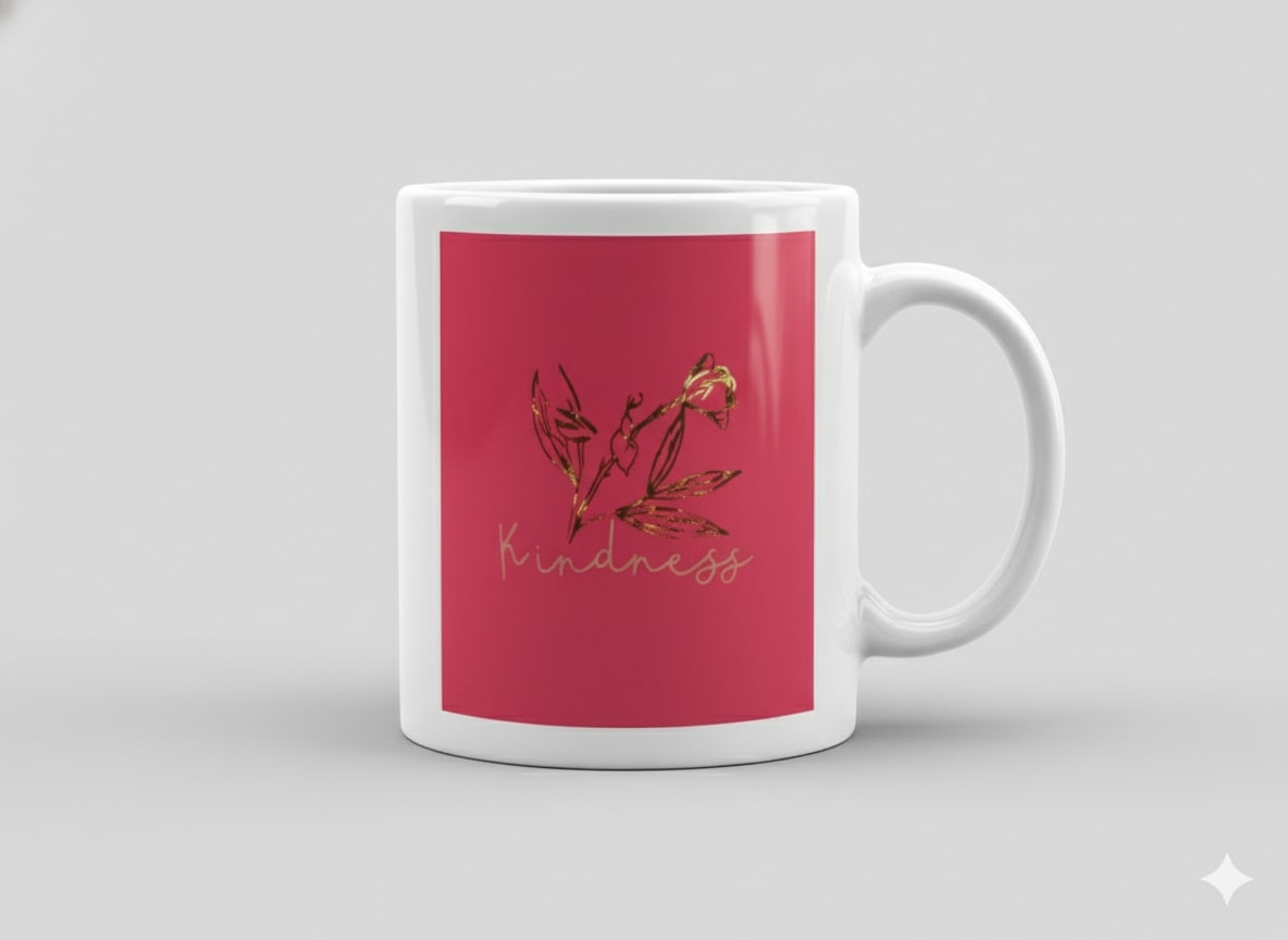 Flowery Kindness Mug – Holographic Flower & White Lettering (Design 1F)