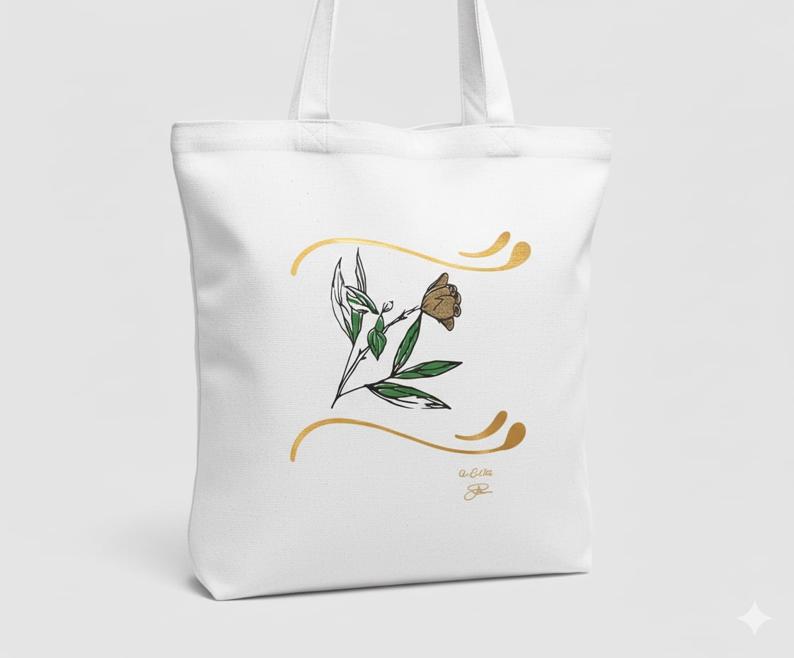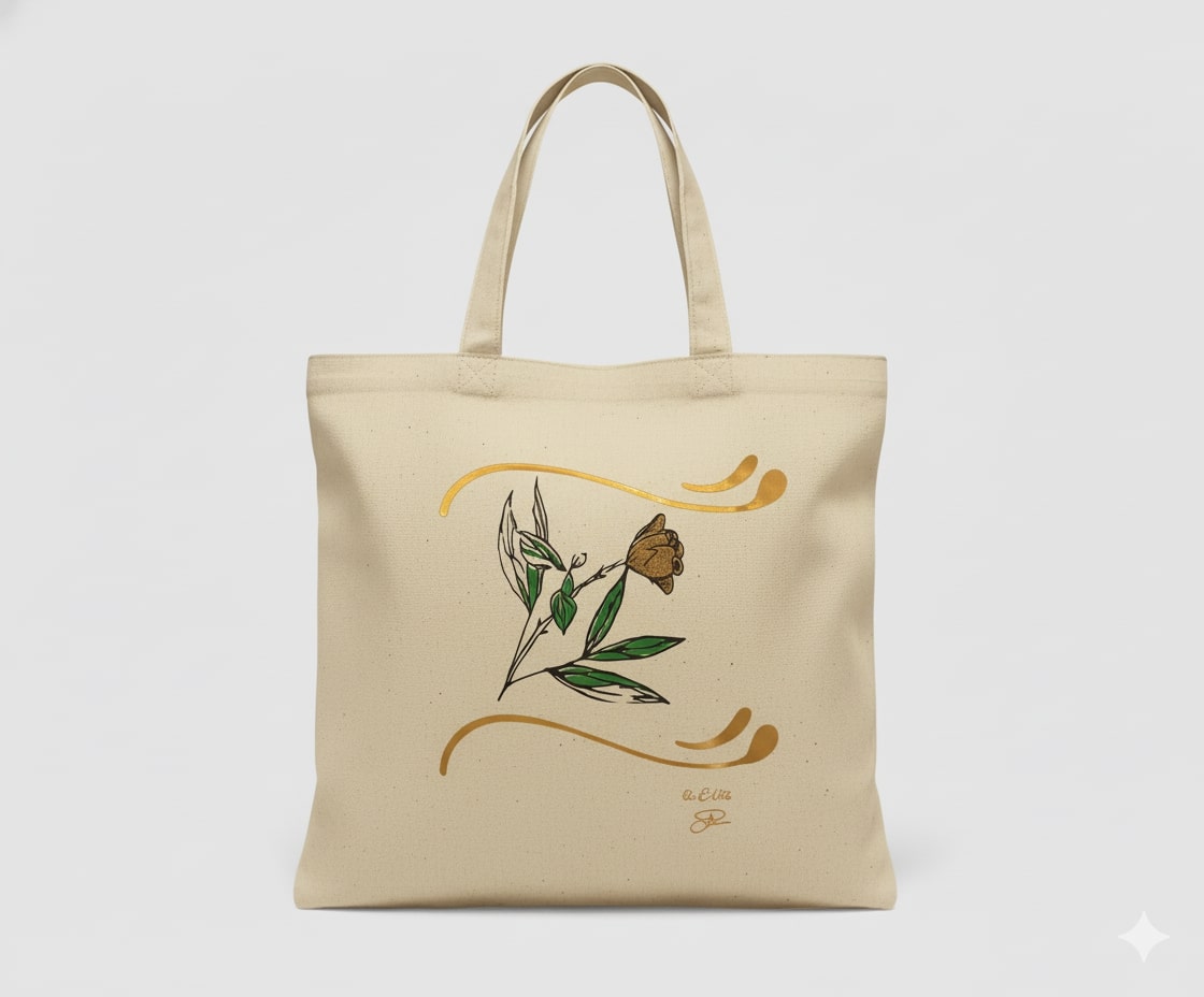 “Just Because” Tote Bag – Hand-Drawn Glitter Flower (Design 1D)